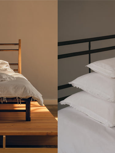 Inspired by traditional and old world bedding, modernized for contemporary aesthetics.