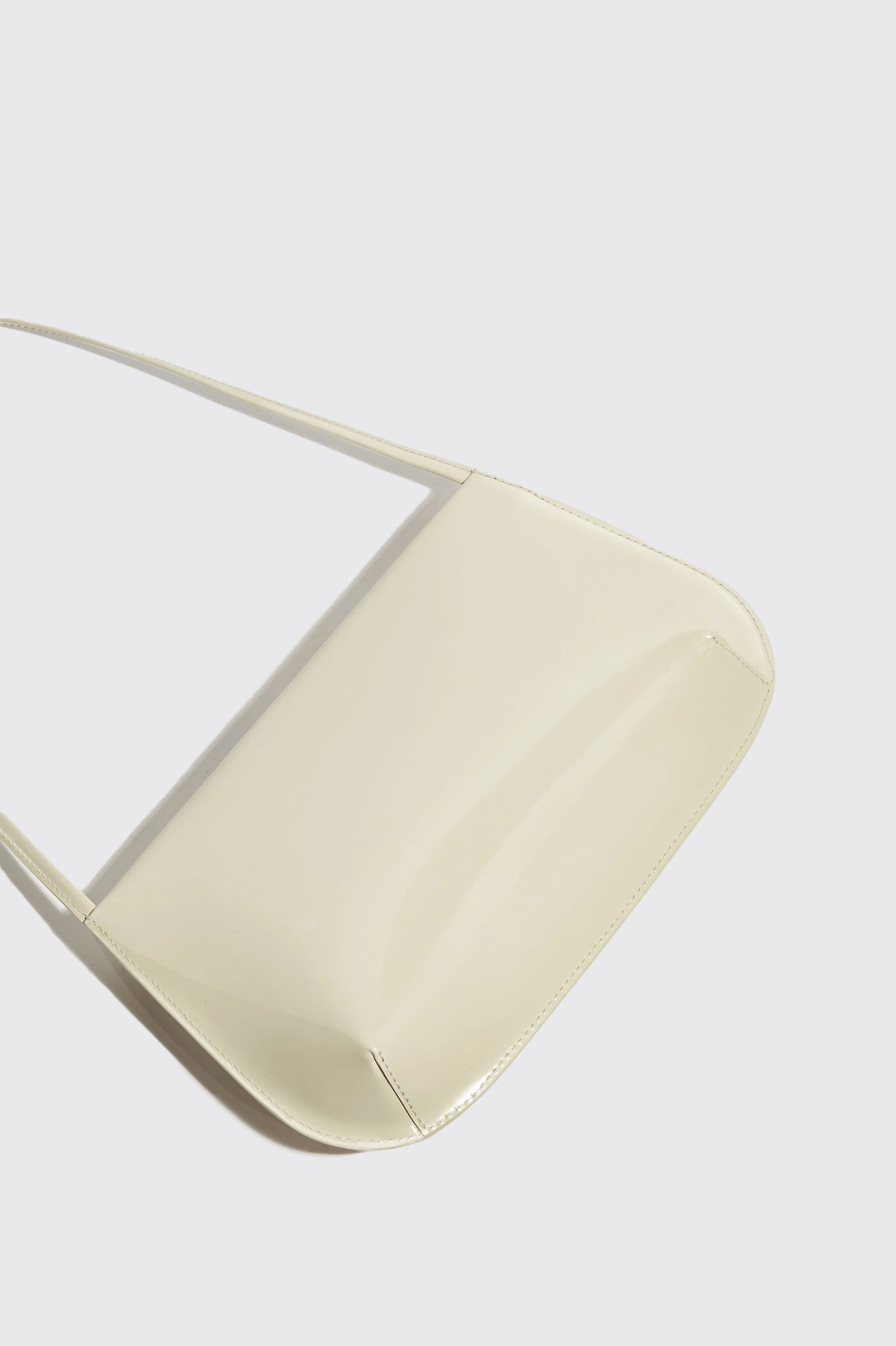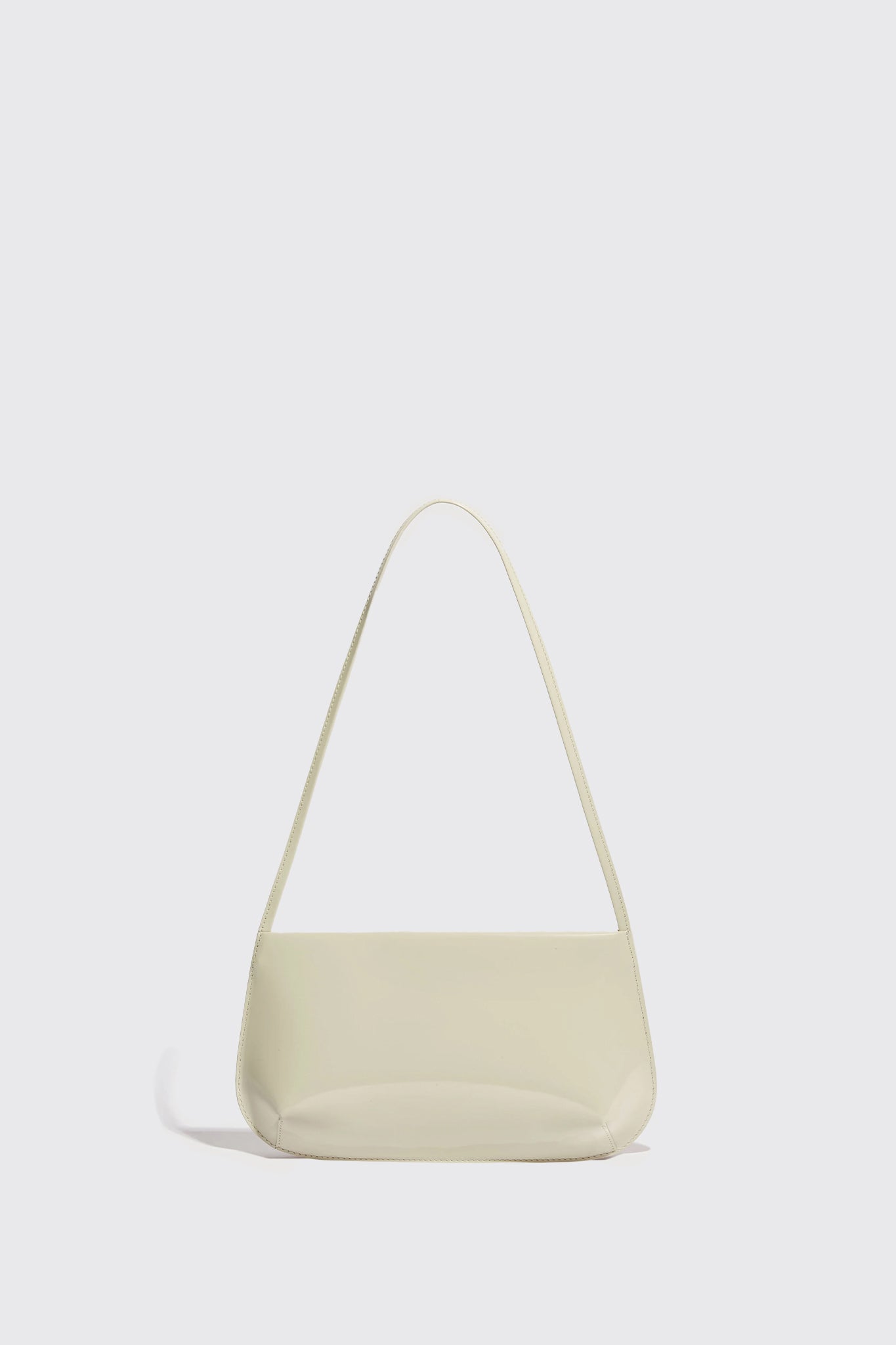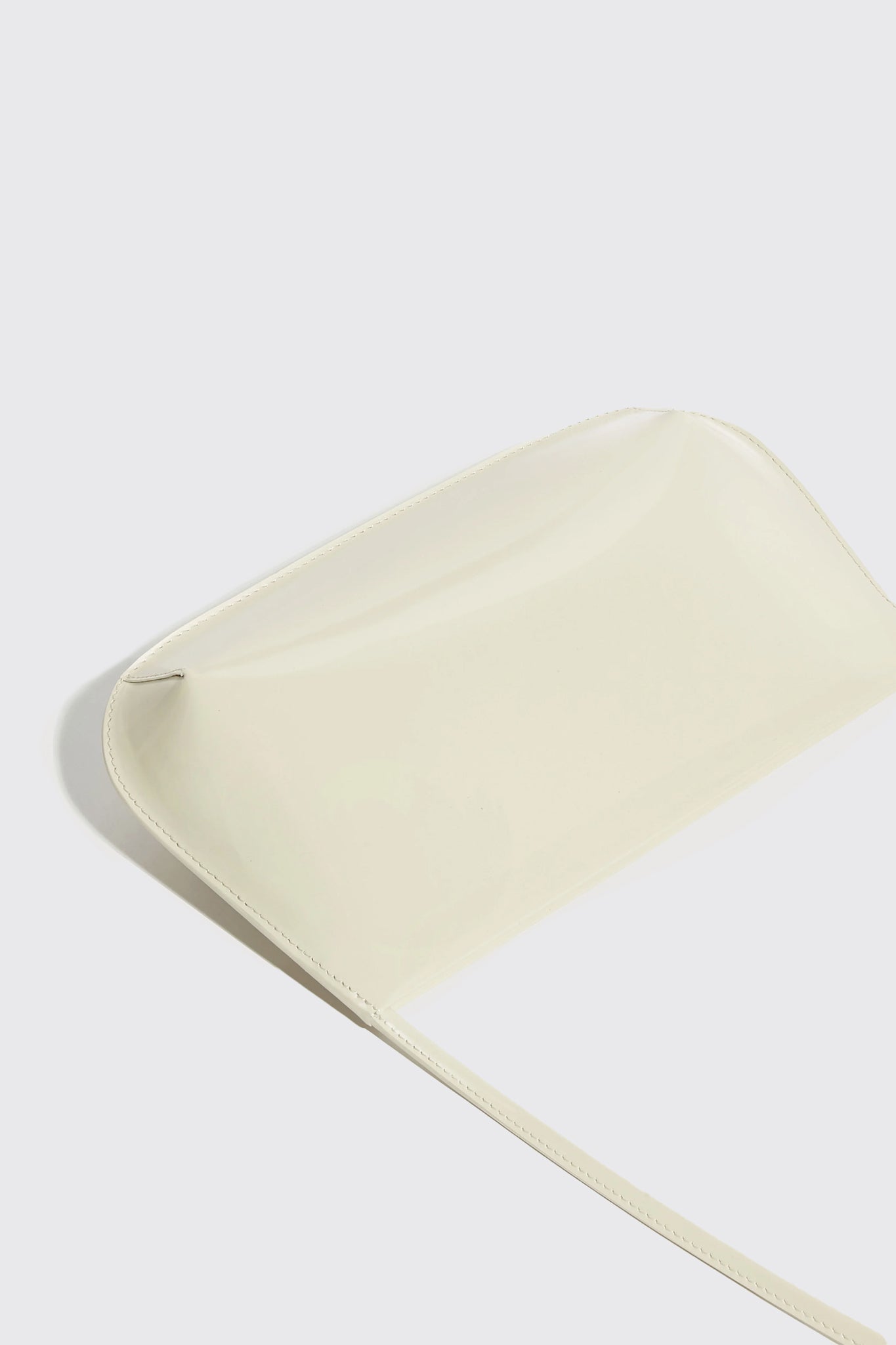 Slim shoulder bag in spazzolato leather with a slim, ribbon-like strap featuring magnetic closure and inner pocket.