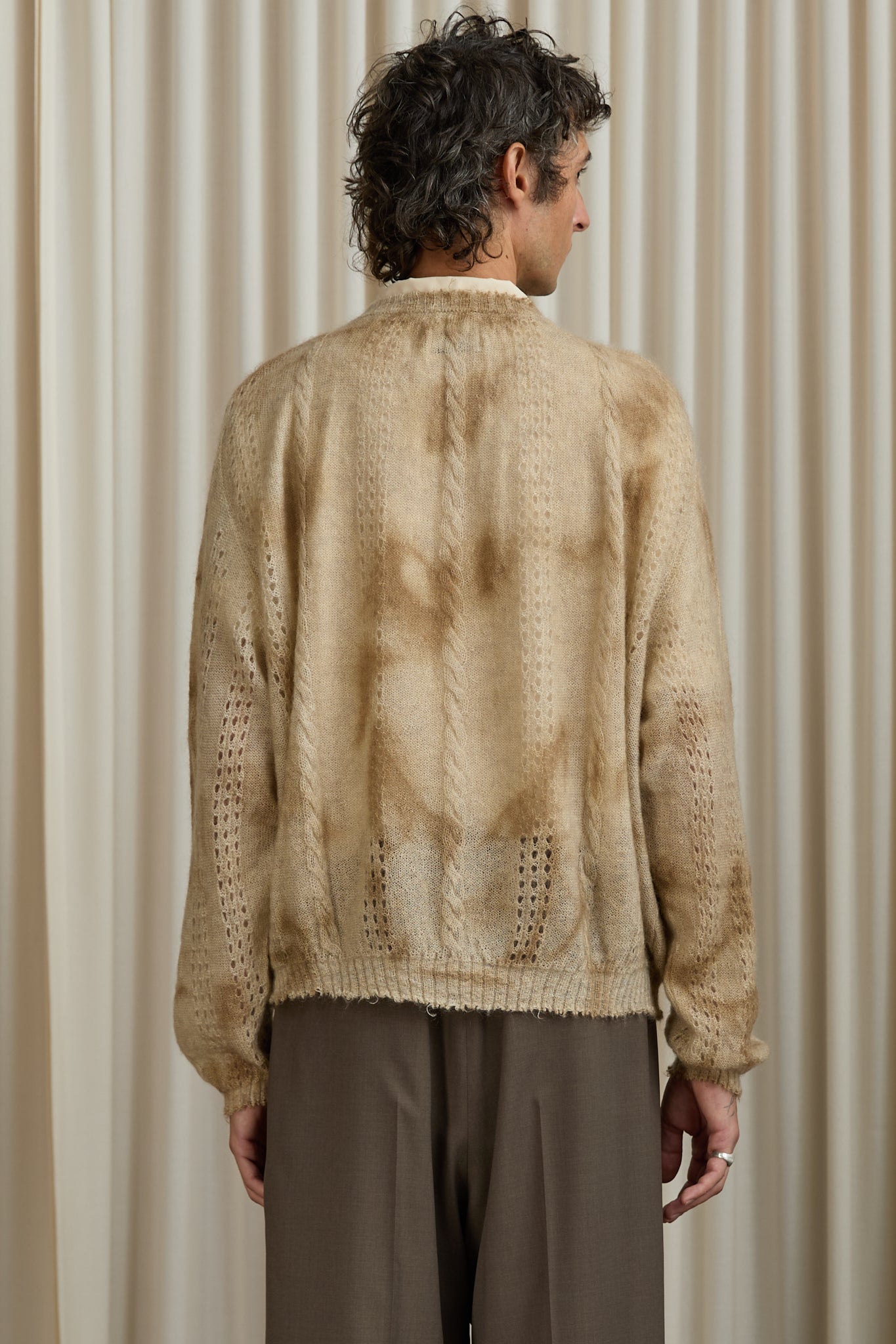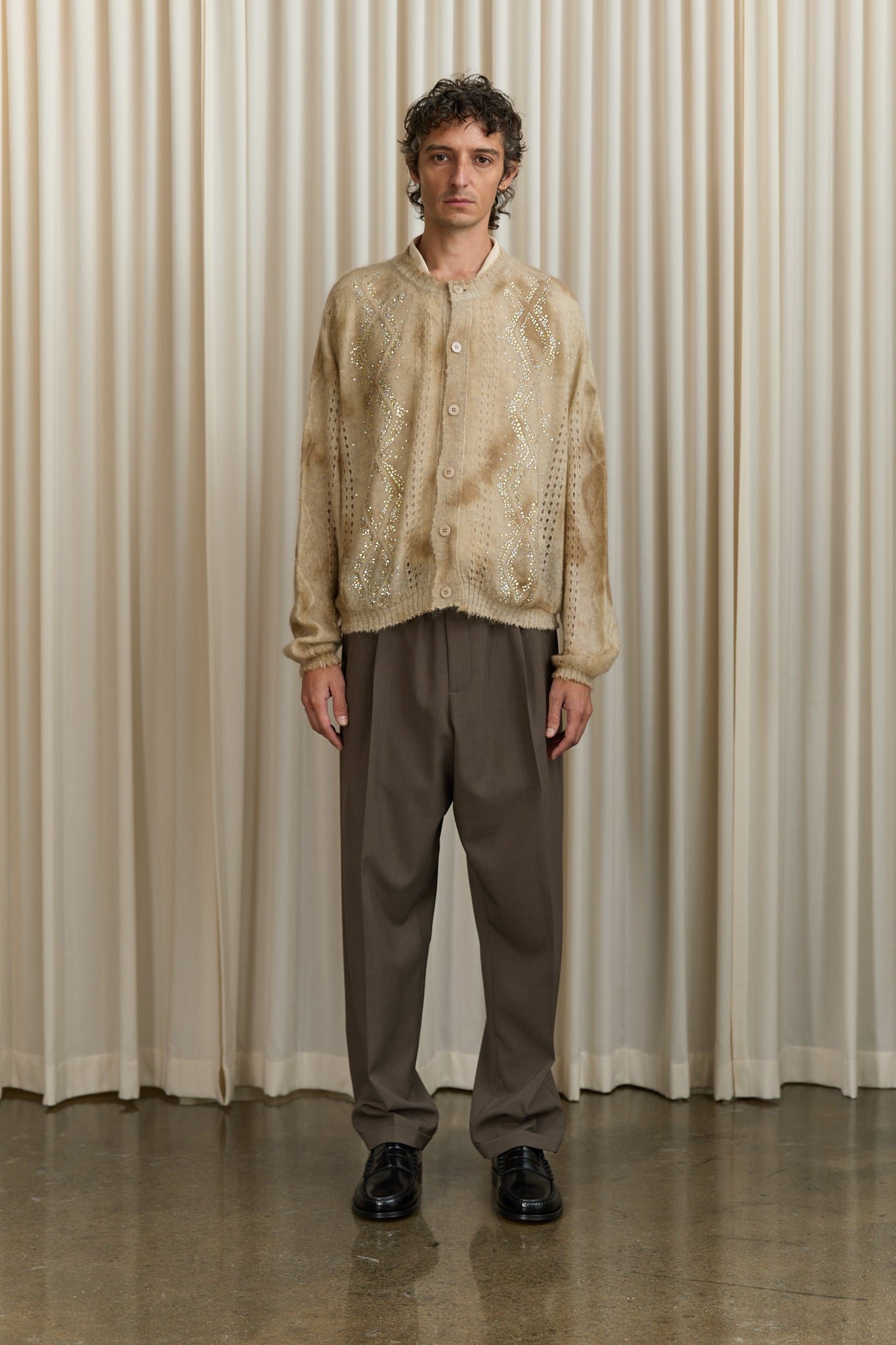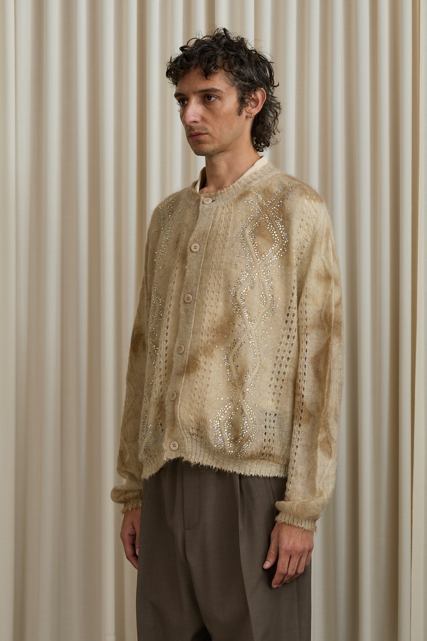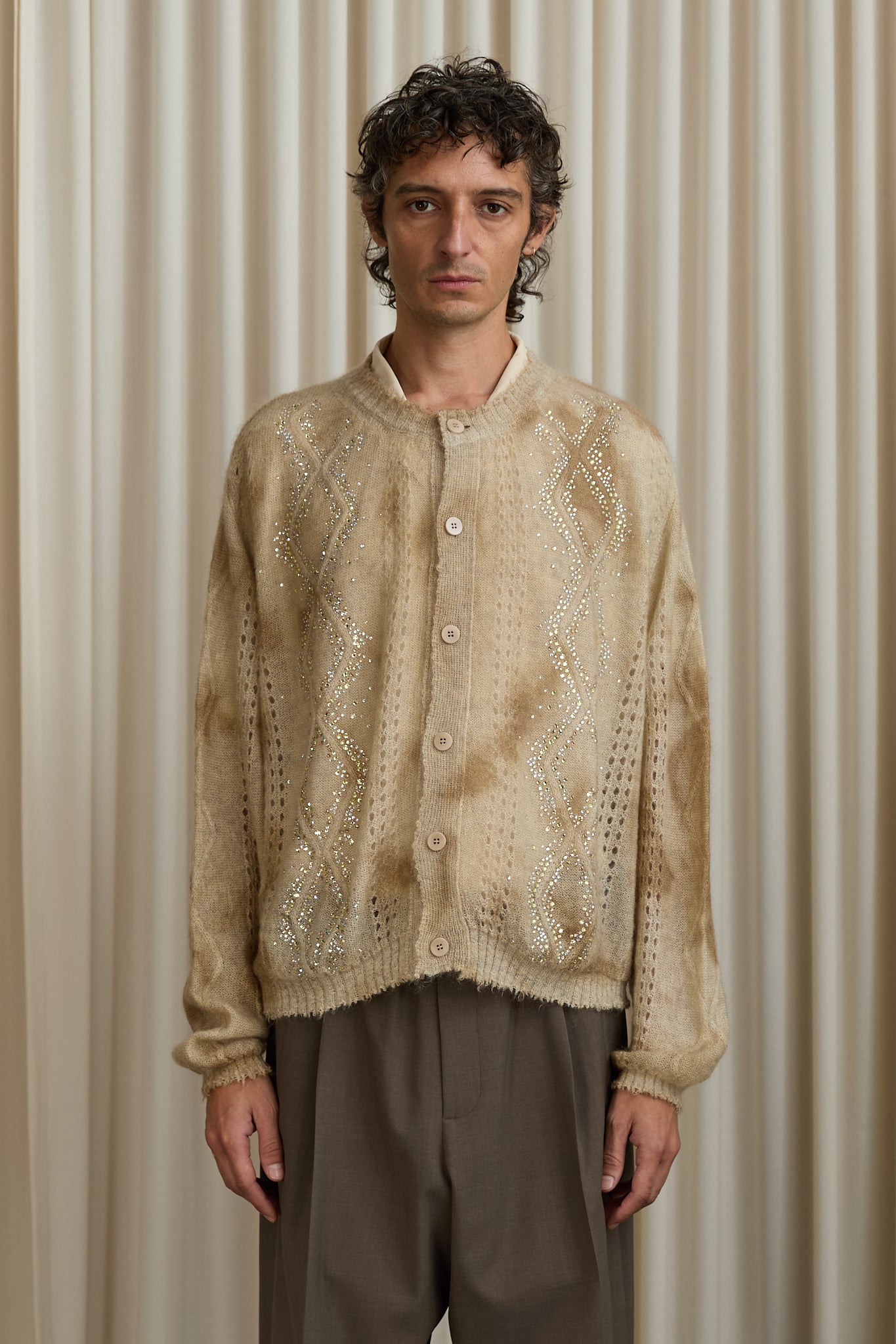 Mohair yarn cardigan with Swarovski crystal embroidery detail.