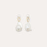 The Pulp is a drop pearl and cubic zirconia earrings finished with a larger baroque pearl. These earrings are inspired by a list of rivers that have reversed course due to climate change. The pieces in this collection course one way and then reverse and flow back in the opposite direction.