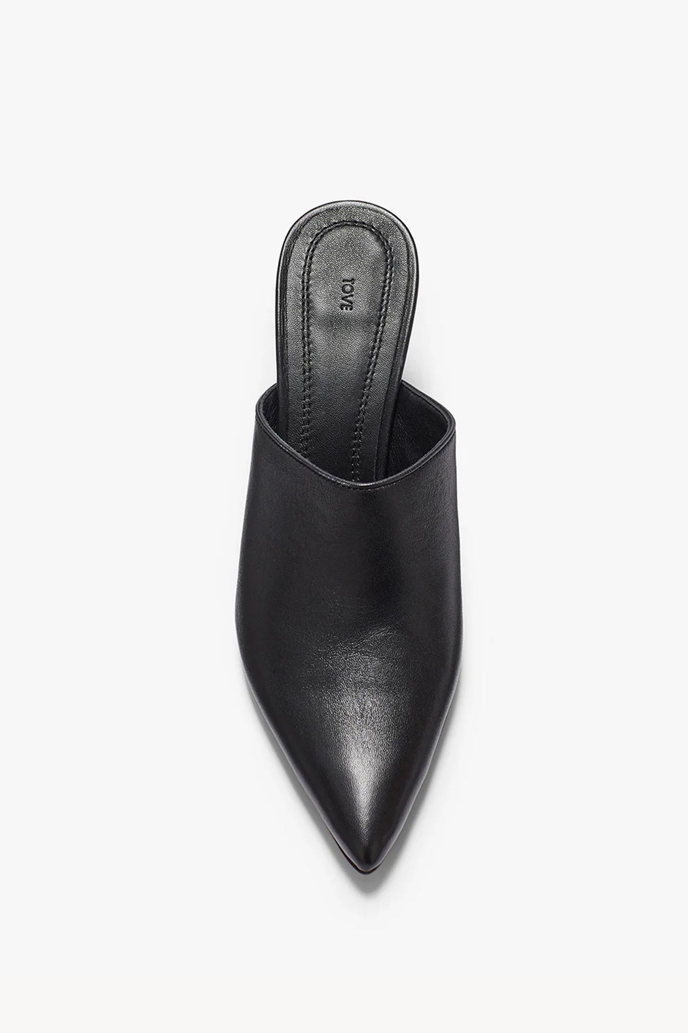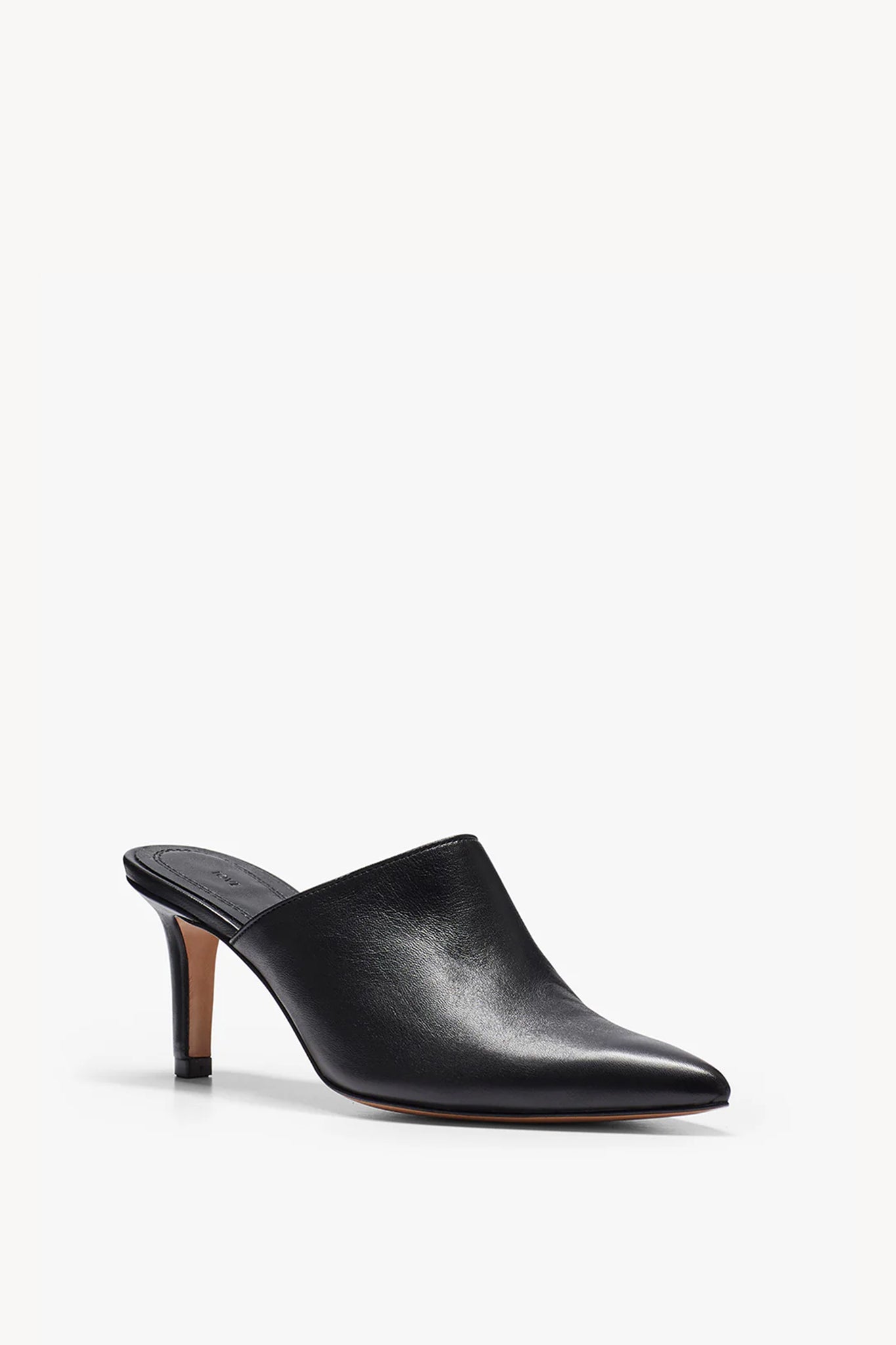 Pointed-toe mule in soft Italian leather with a mid-height heel.