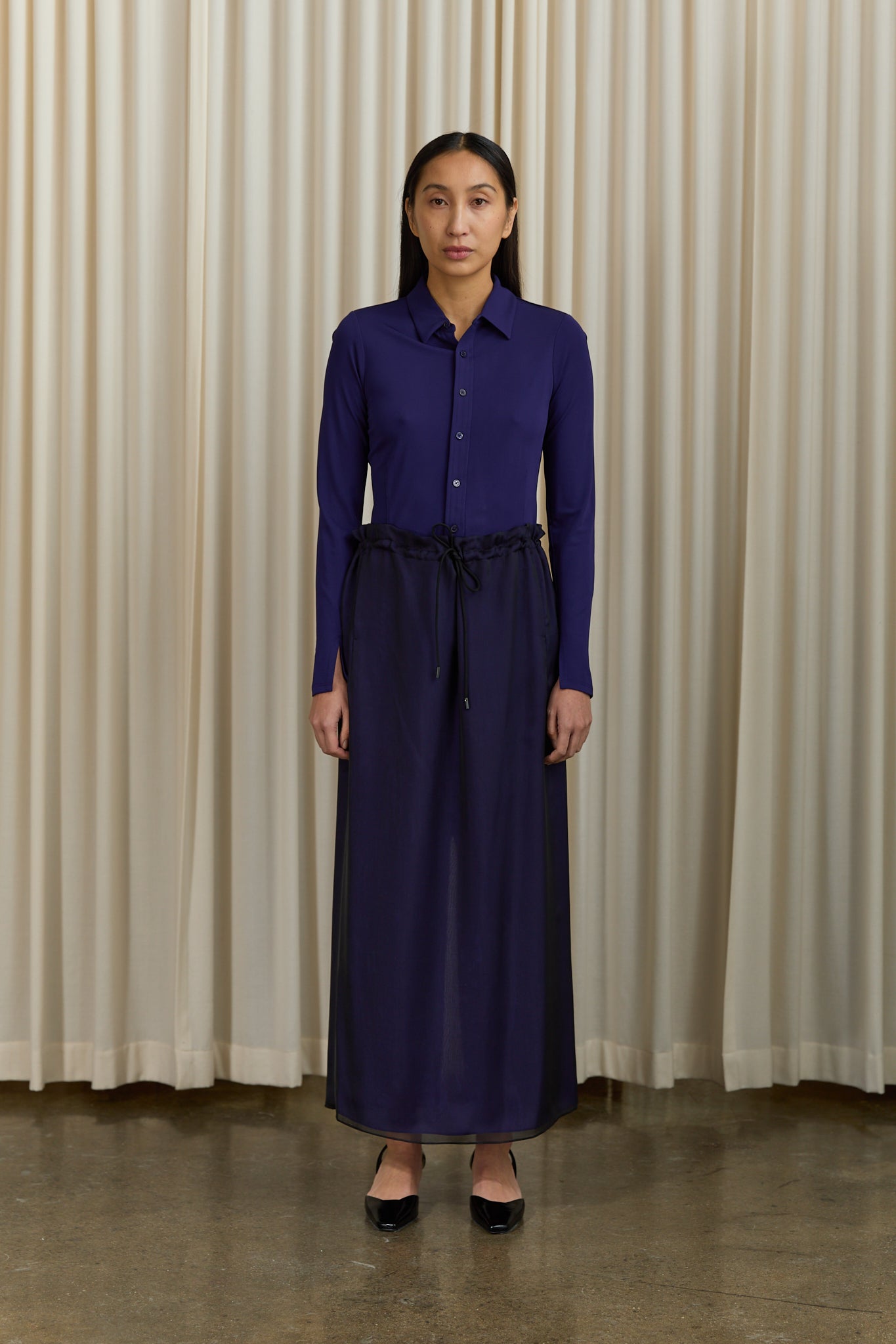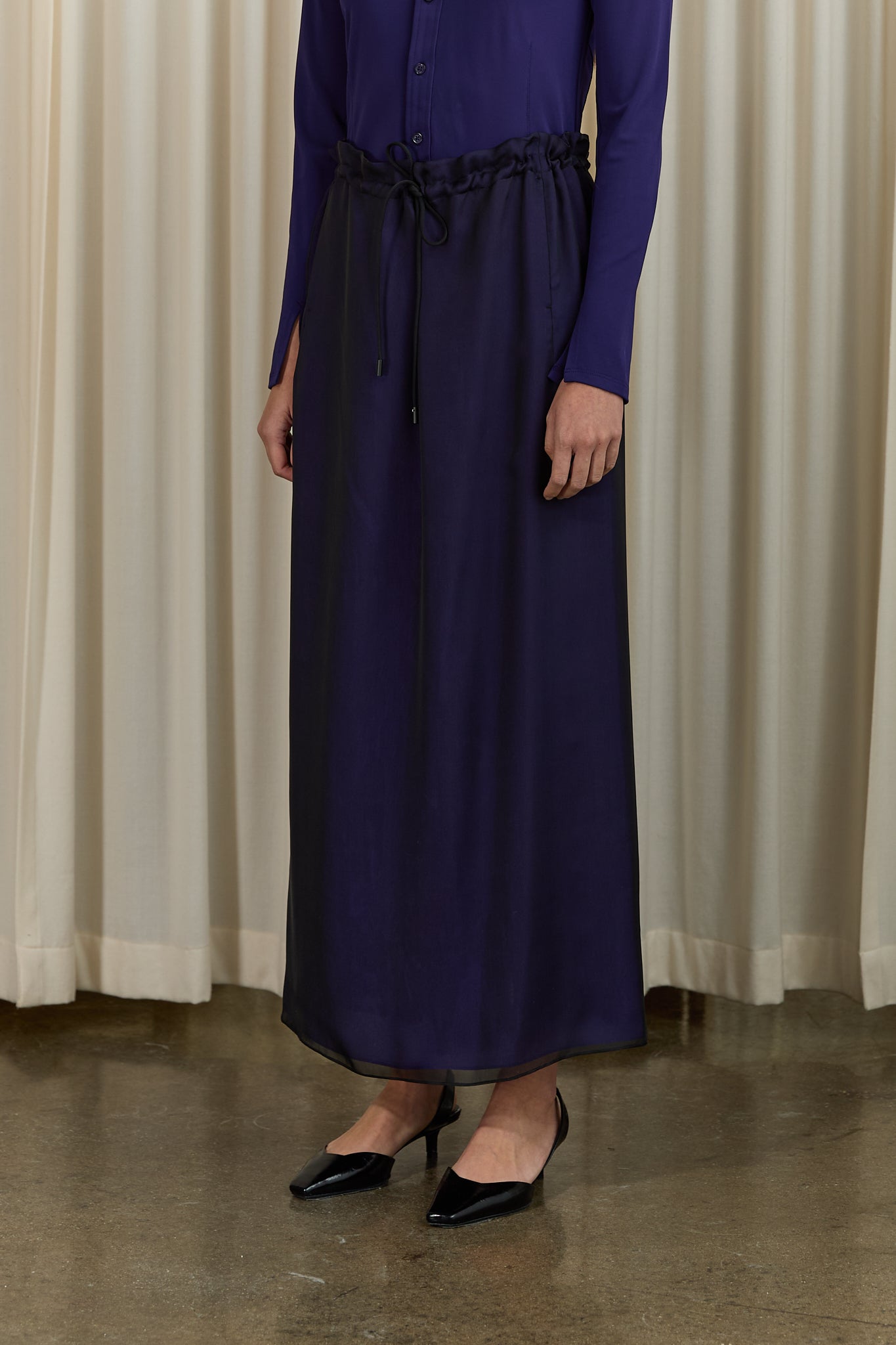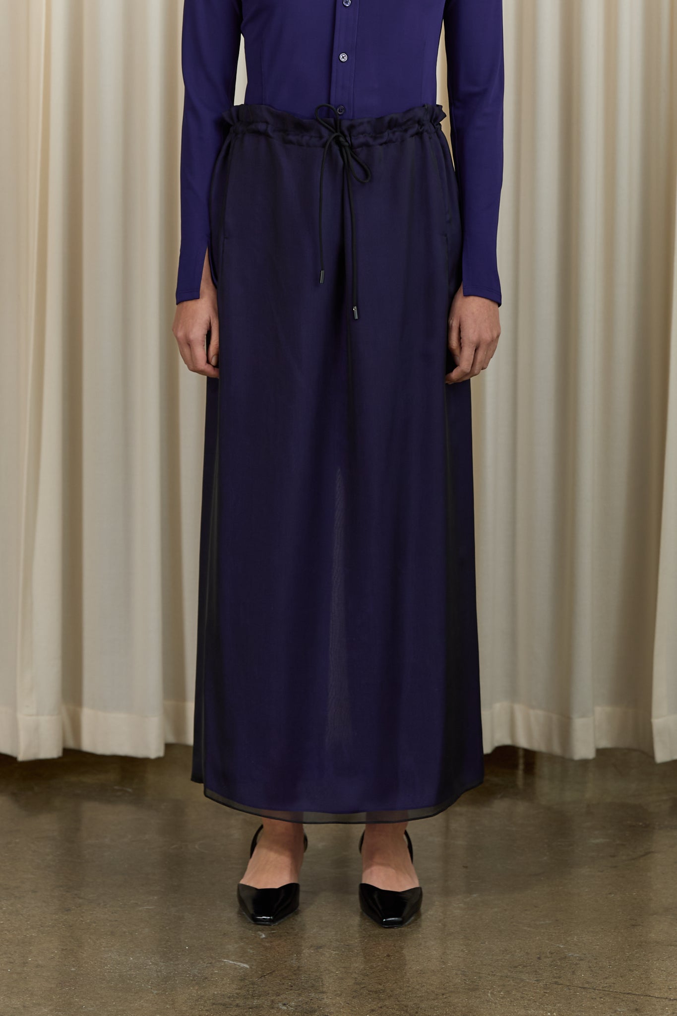 Regina Drawstring Skirt in Black / Purple