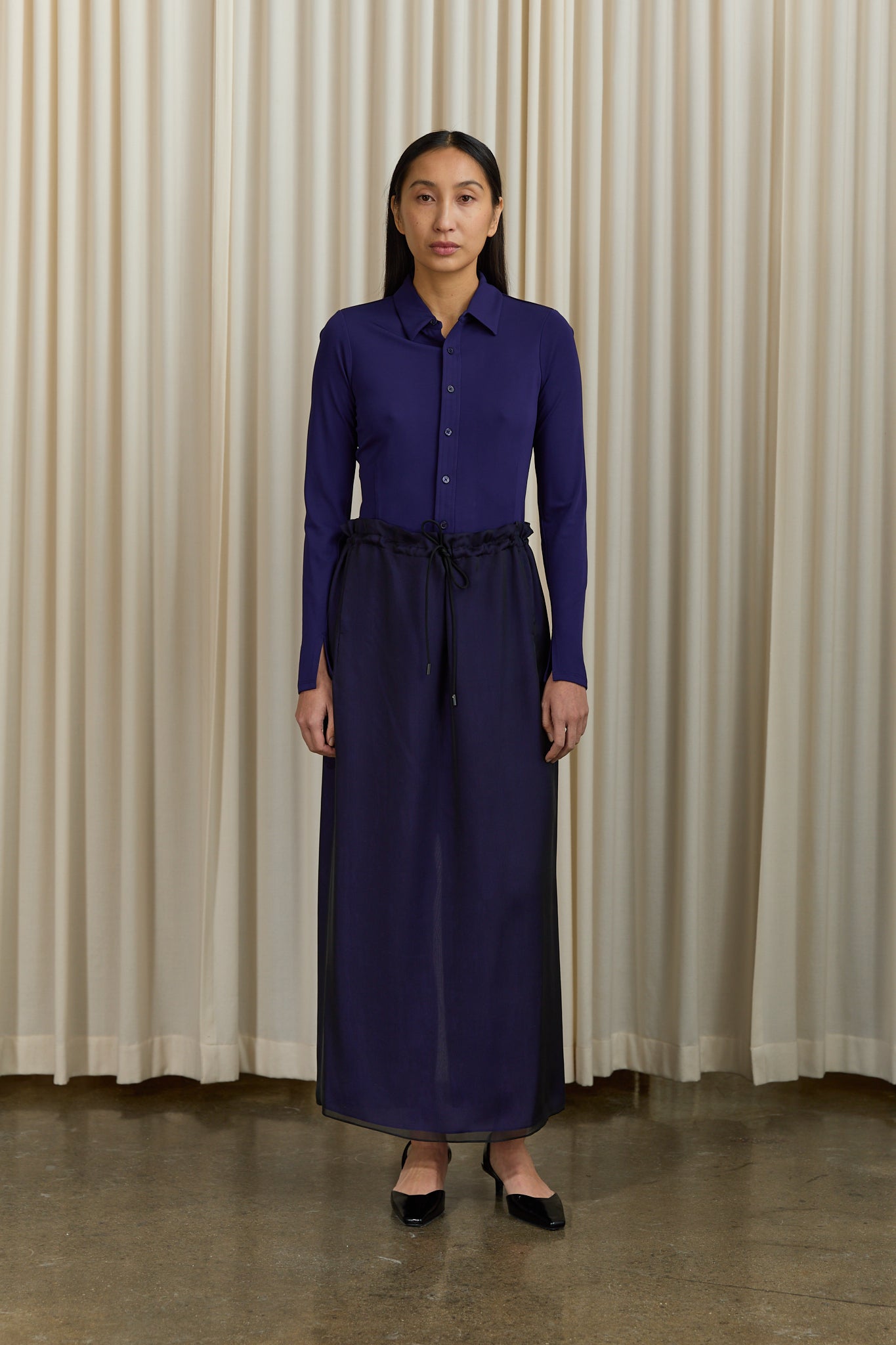 Worn with Kallmeyer Frankie Button Down in Purple and Loulou de Saison Hyde Slingbacks in Black.