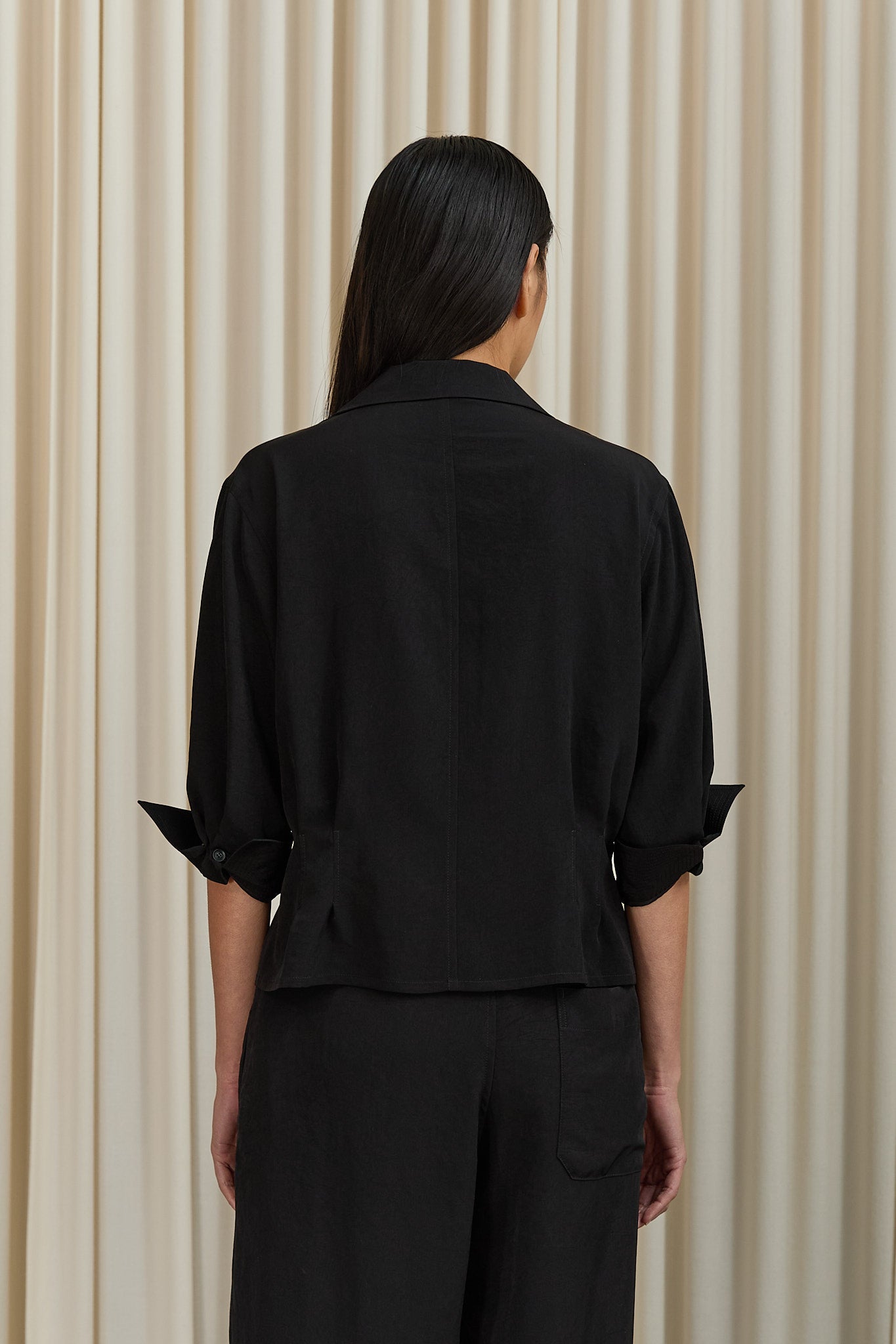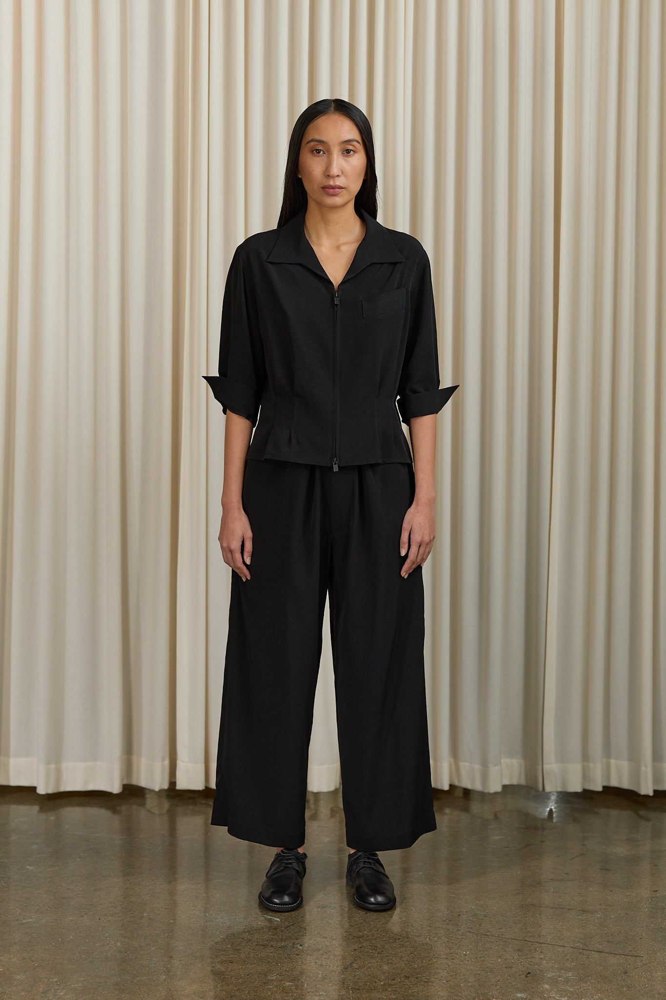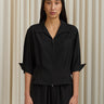 Crepe de Chine 3/4 Sleeve Blouse in Black