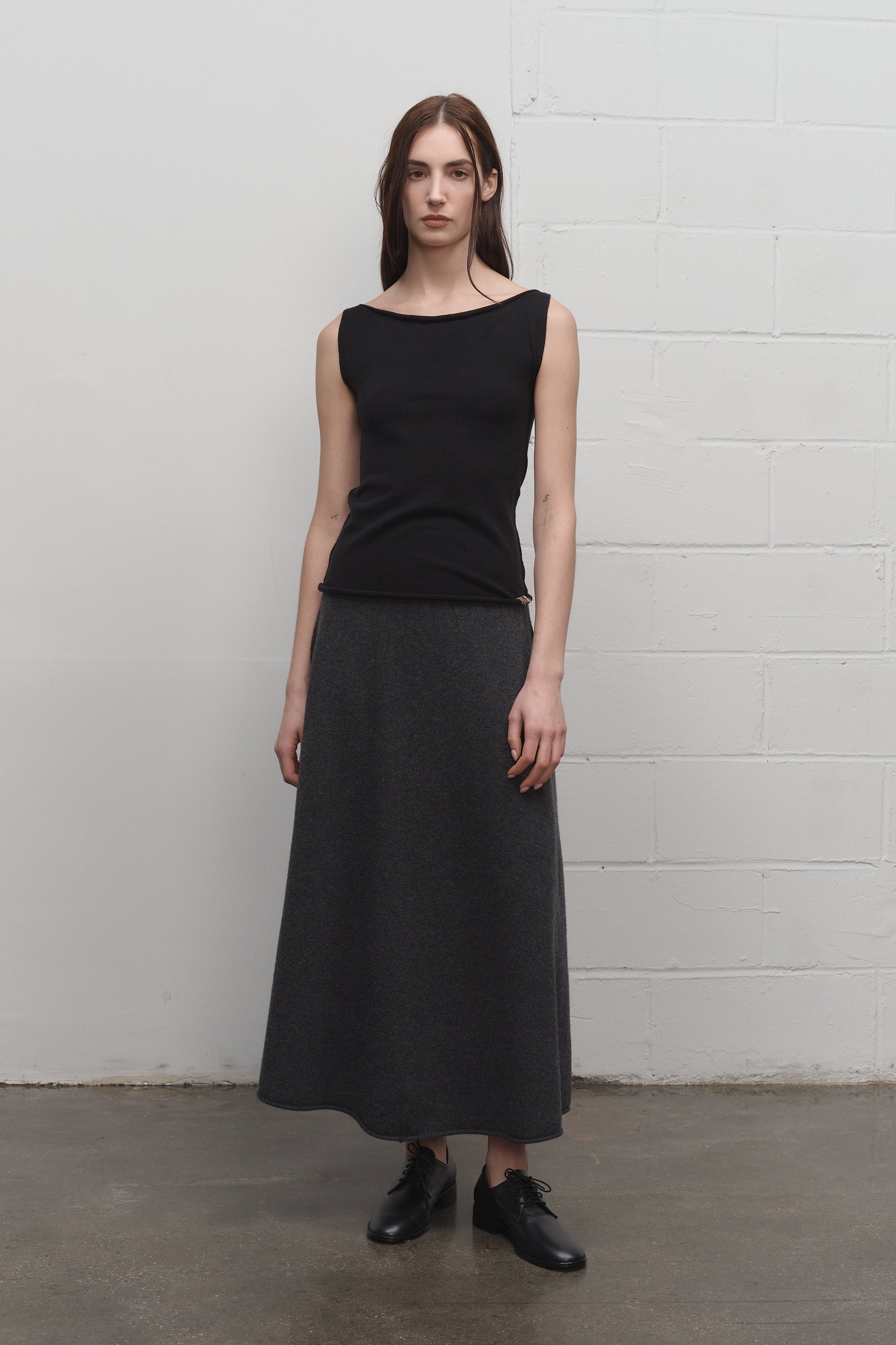 Worn with Extreme Cashmere N°388 Ease Skirt in Grey and La Collection Ari Shoes in Black.