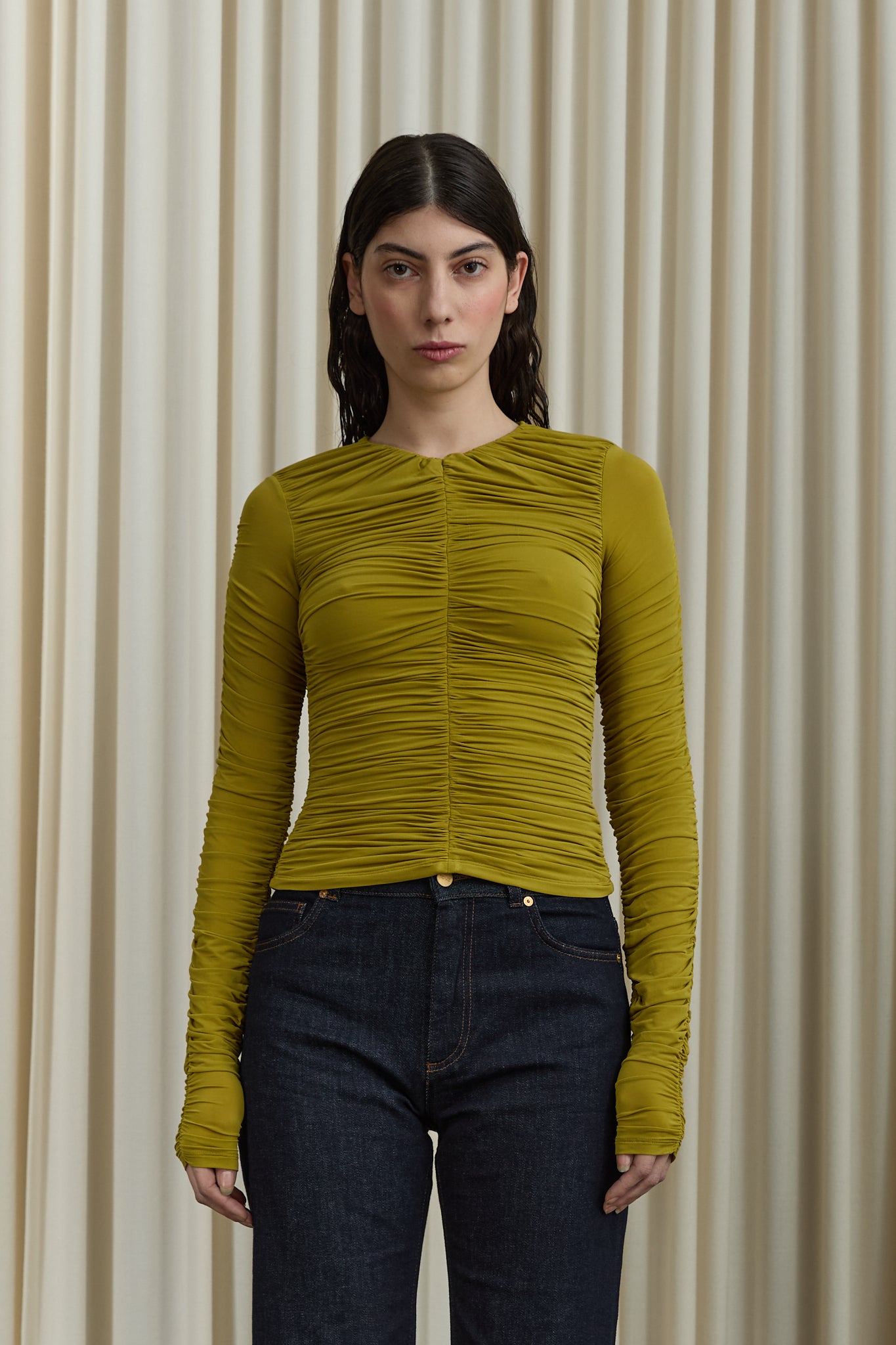 Long-sleeve top with delicate gathers and a slim, body-skimming fit in lightweight jersey.