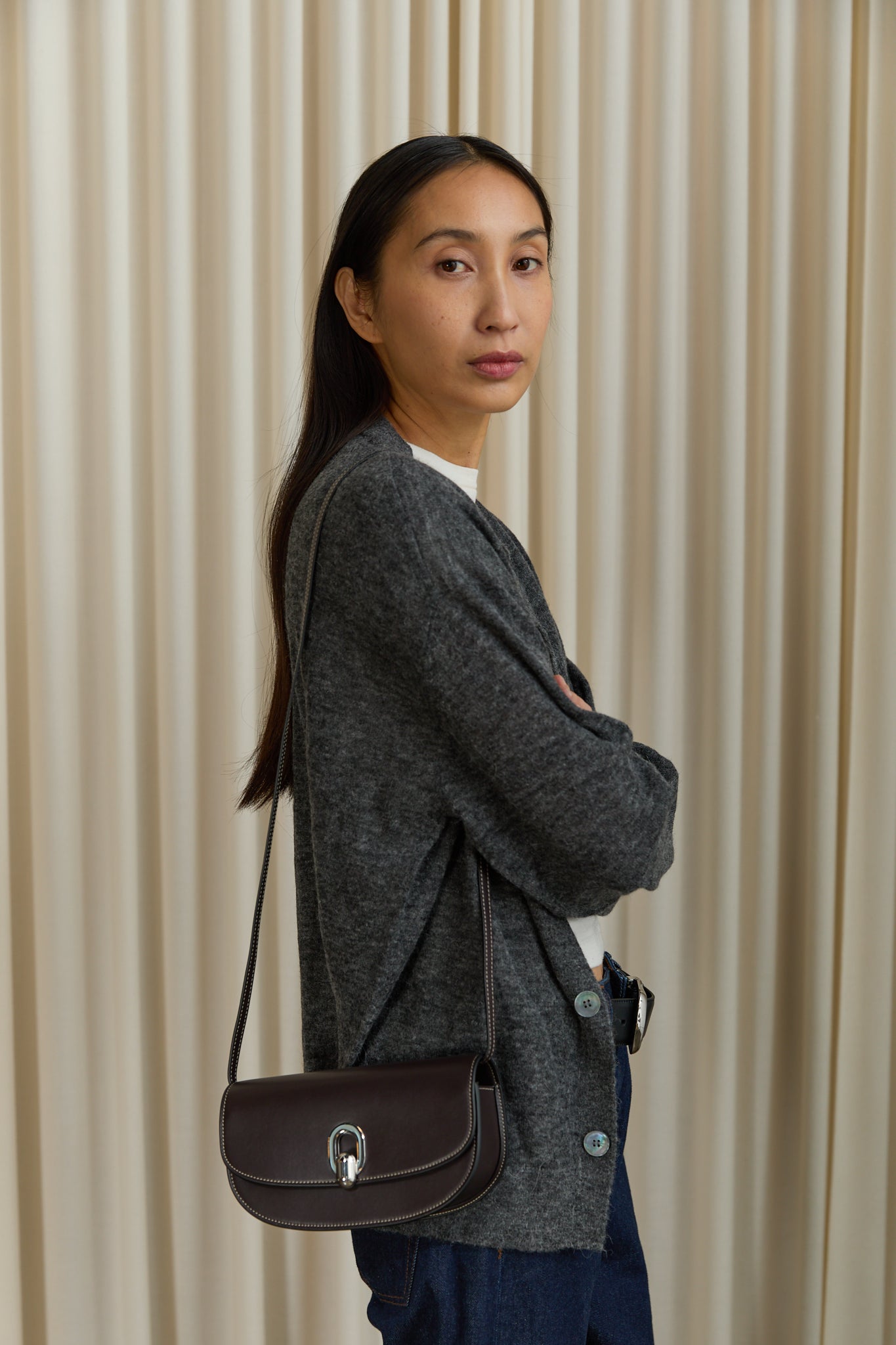 A petite and stylized rendition of the original Tondo 22, with a simplified one-compartment construction. Featuring a removable crossbody strap, as well as Savette's signature magnetic lock.