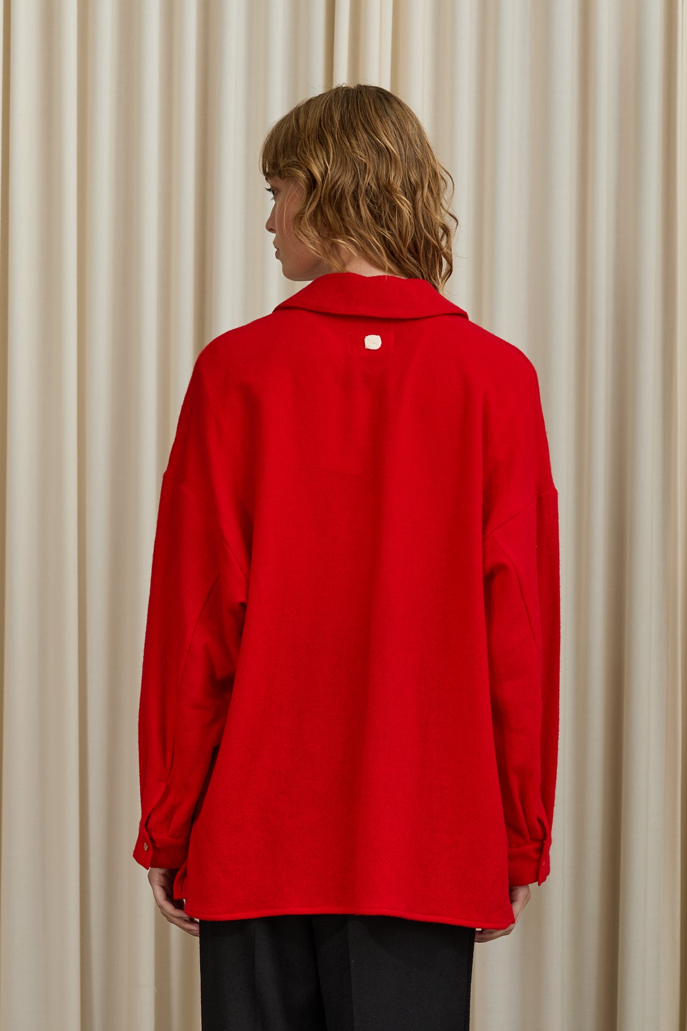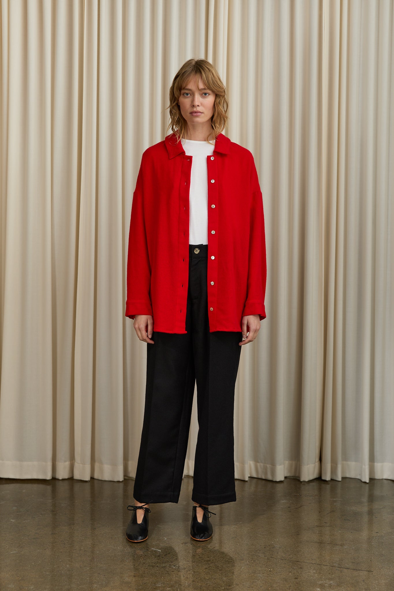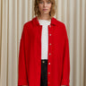 Oversized long sleeve shirt with button cuff. Features classic square collar and dropped shoulders.