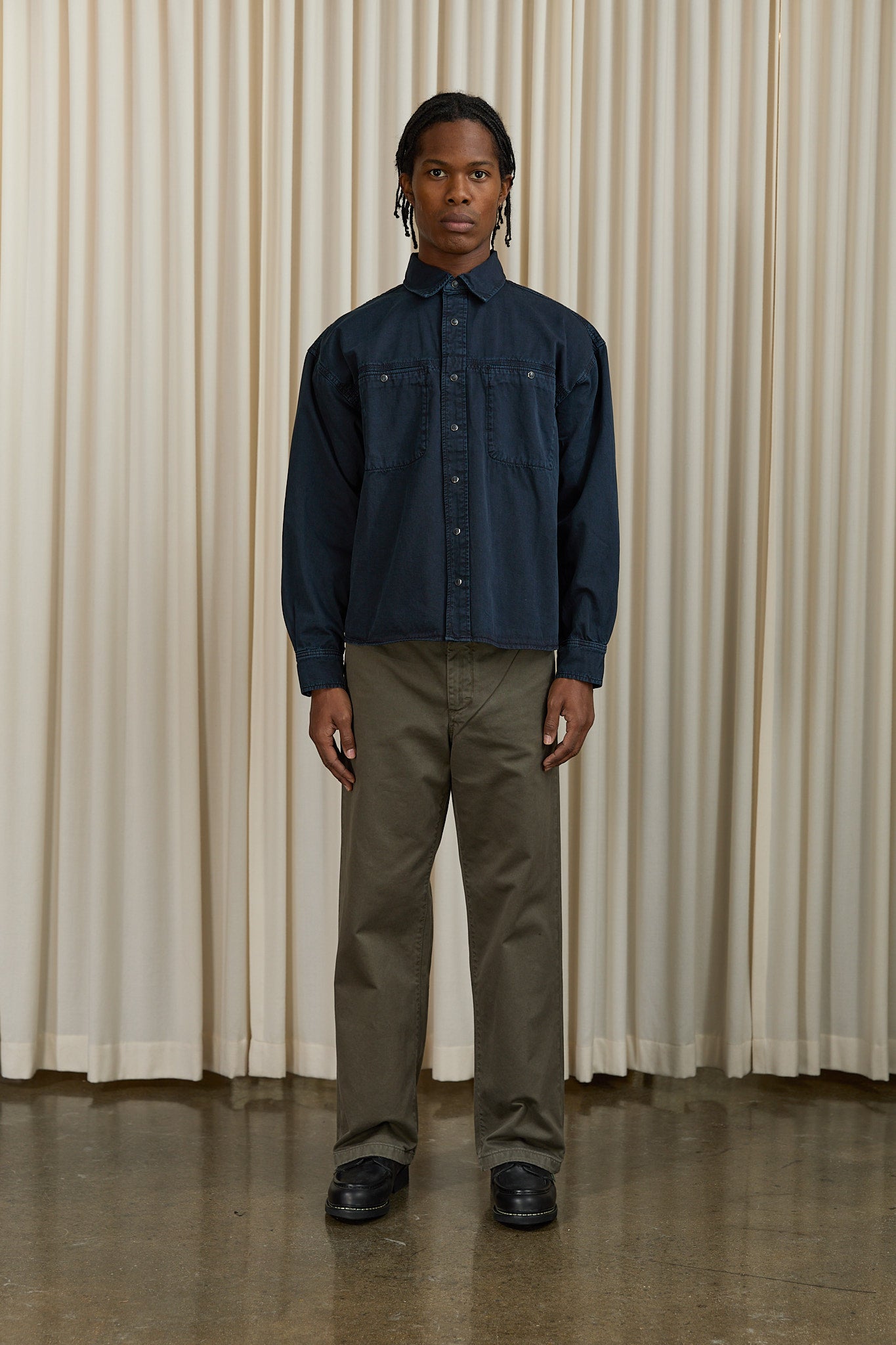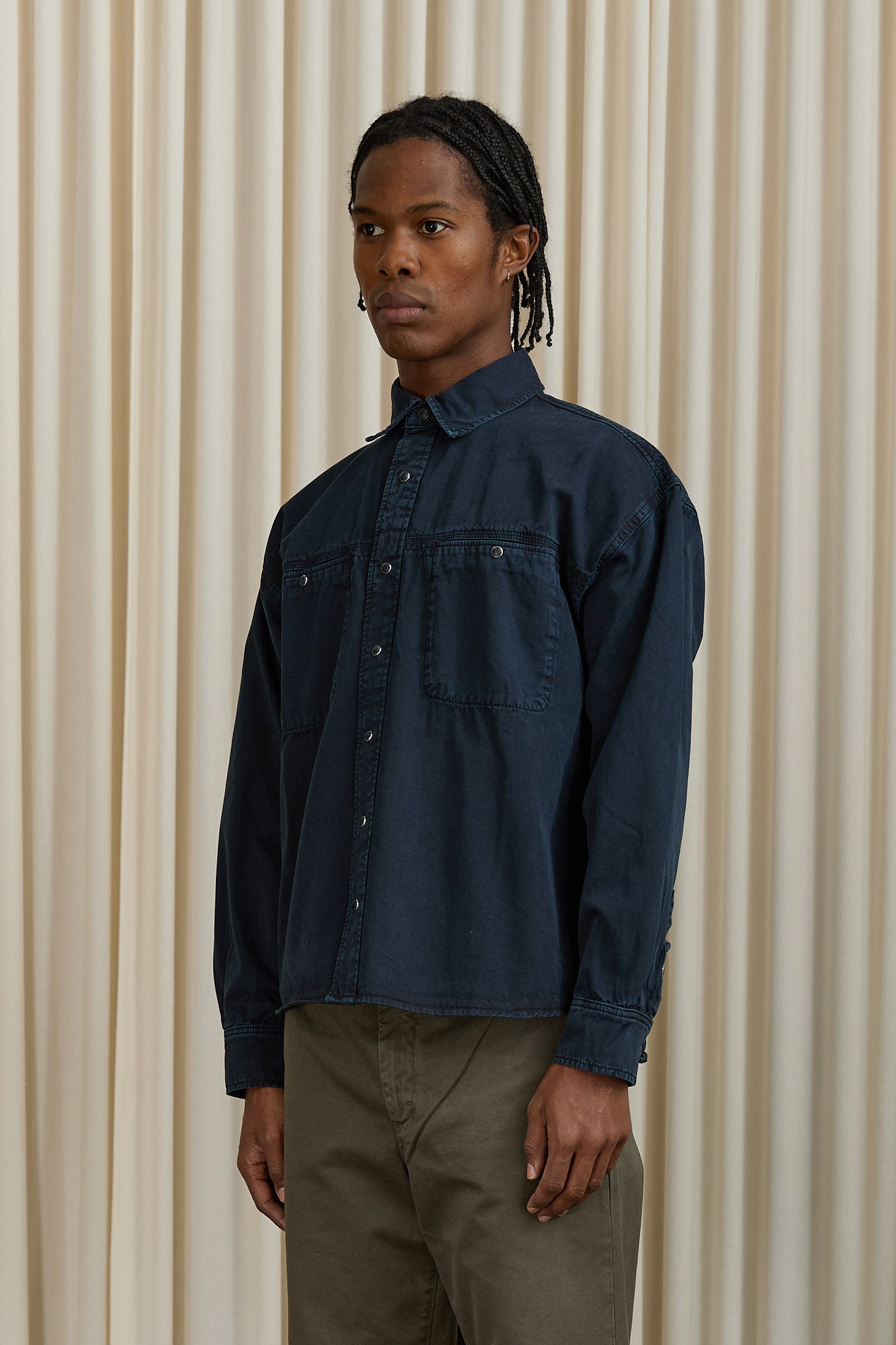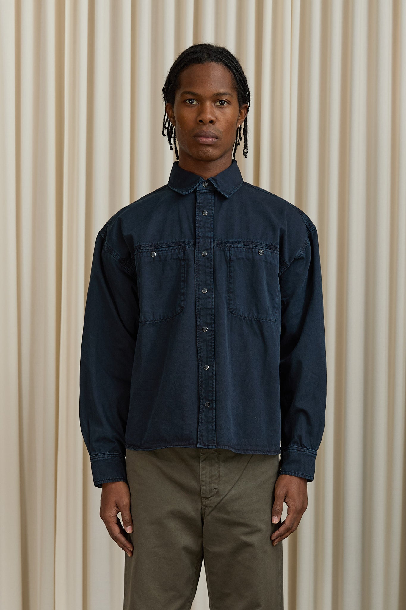 Relaxed fit, worker-style shirt in a heavy-weight cotton with a boxy silhouette.