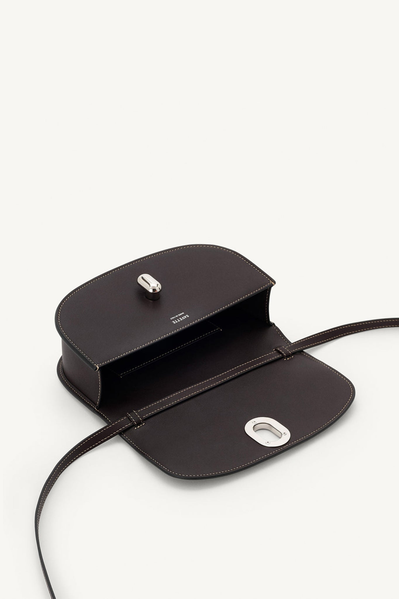 A petite and stylized rendition of the original Tondo 22, with a simplified one-compartment construction. Featuring a removable crossbody strap, as well as Savette's signature magnetic lock.