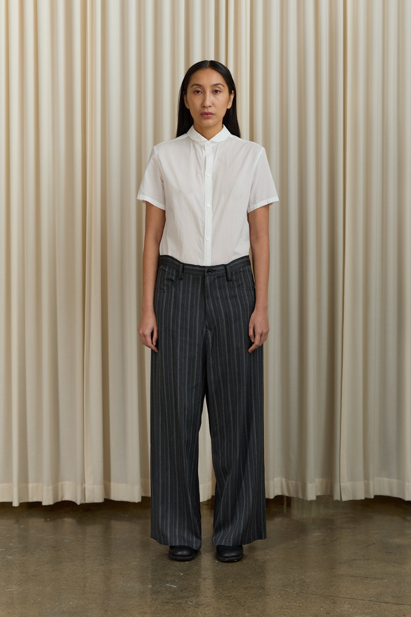 Worn with Y's by Yohji Yamamoto Cotton Round Collar Shirt in White and Guidi 992MS Classic Derby in Black.