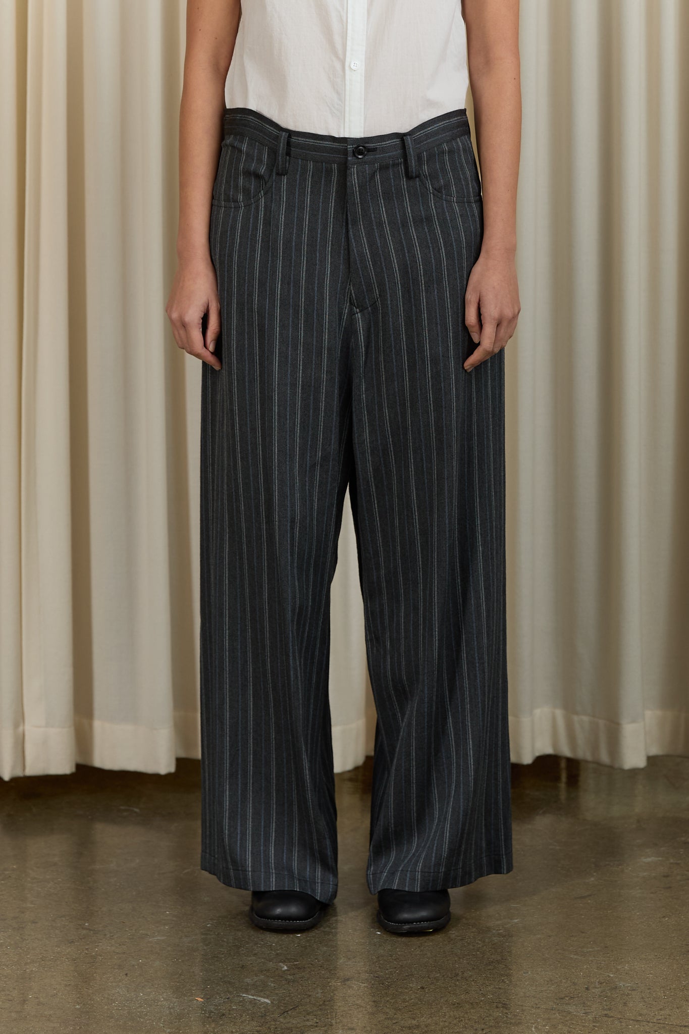 Stripe Long Straight Pant in Grey