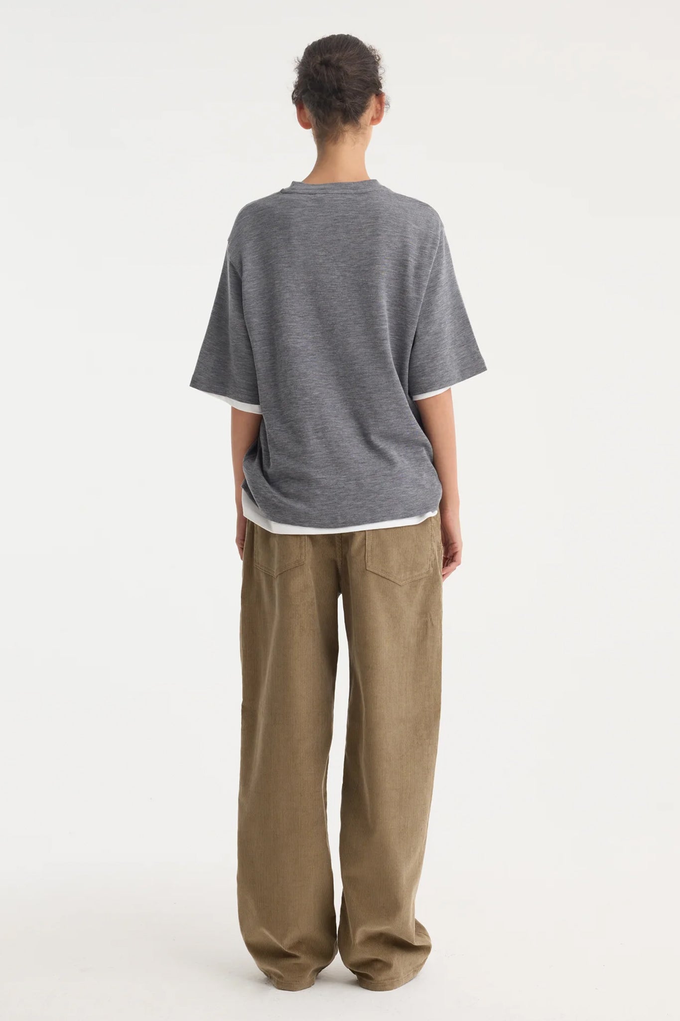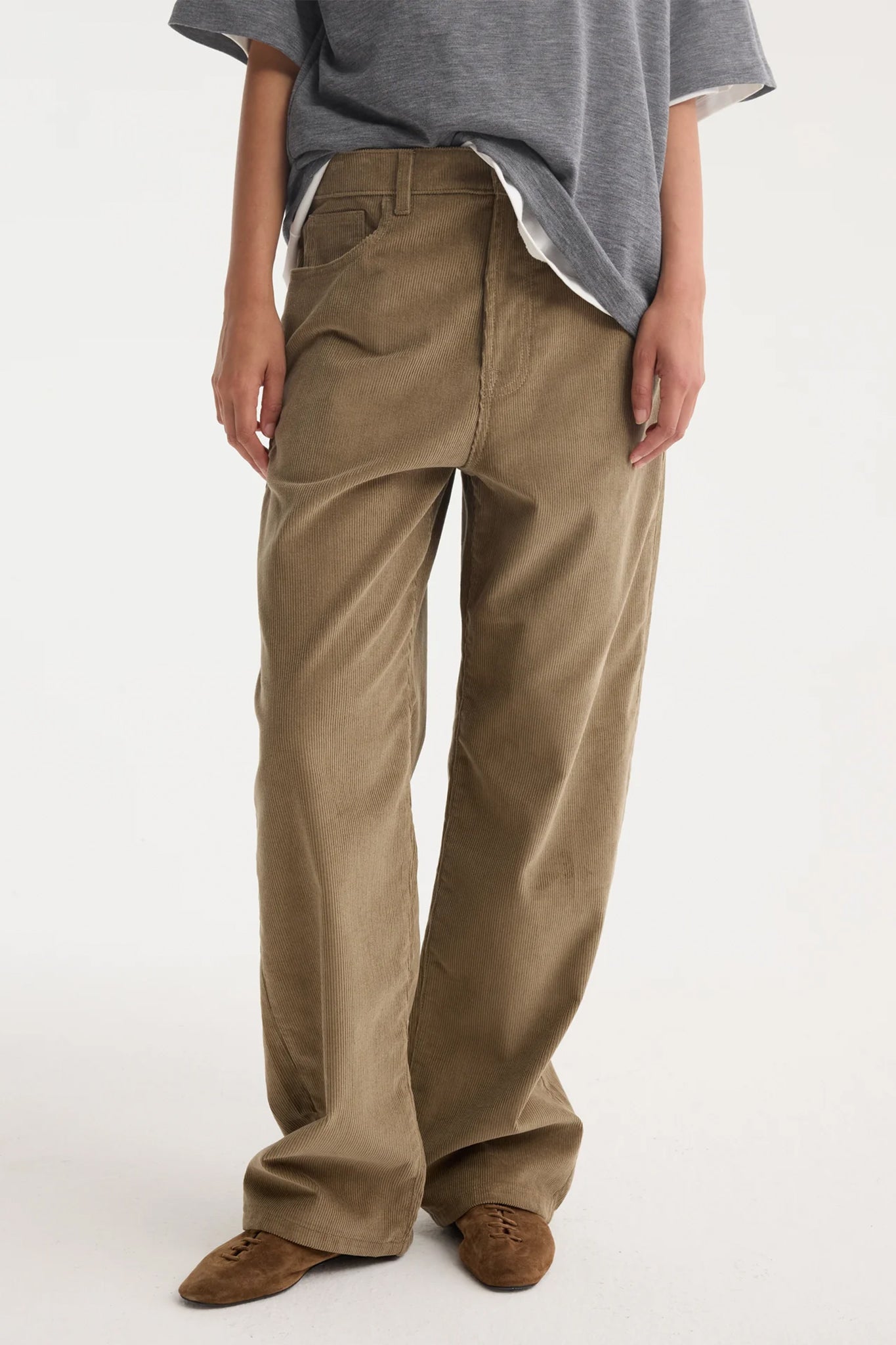 Corduroy trousers in denim-inspired 5-pocket style. Features tonal topstitching, belt loops and button fly closure.