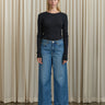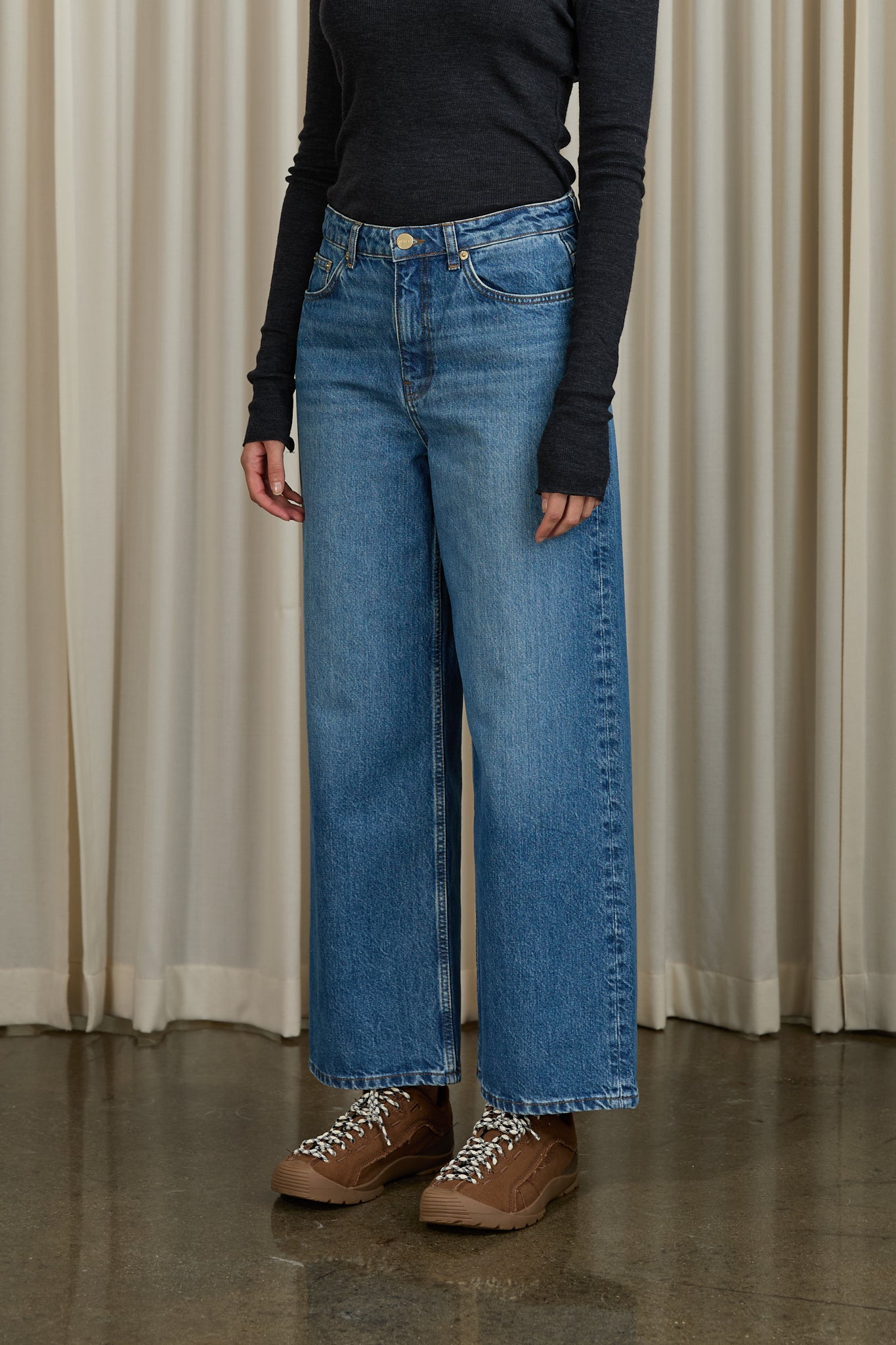 Classic, 5-pocket wide leg jeans in certified organic cotton. Features belt loops and embroidered SKALL logo on the back of waistline.