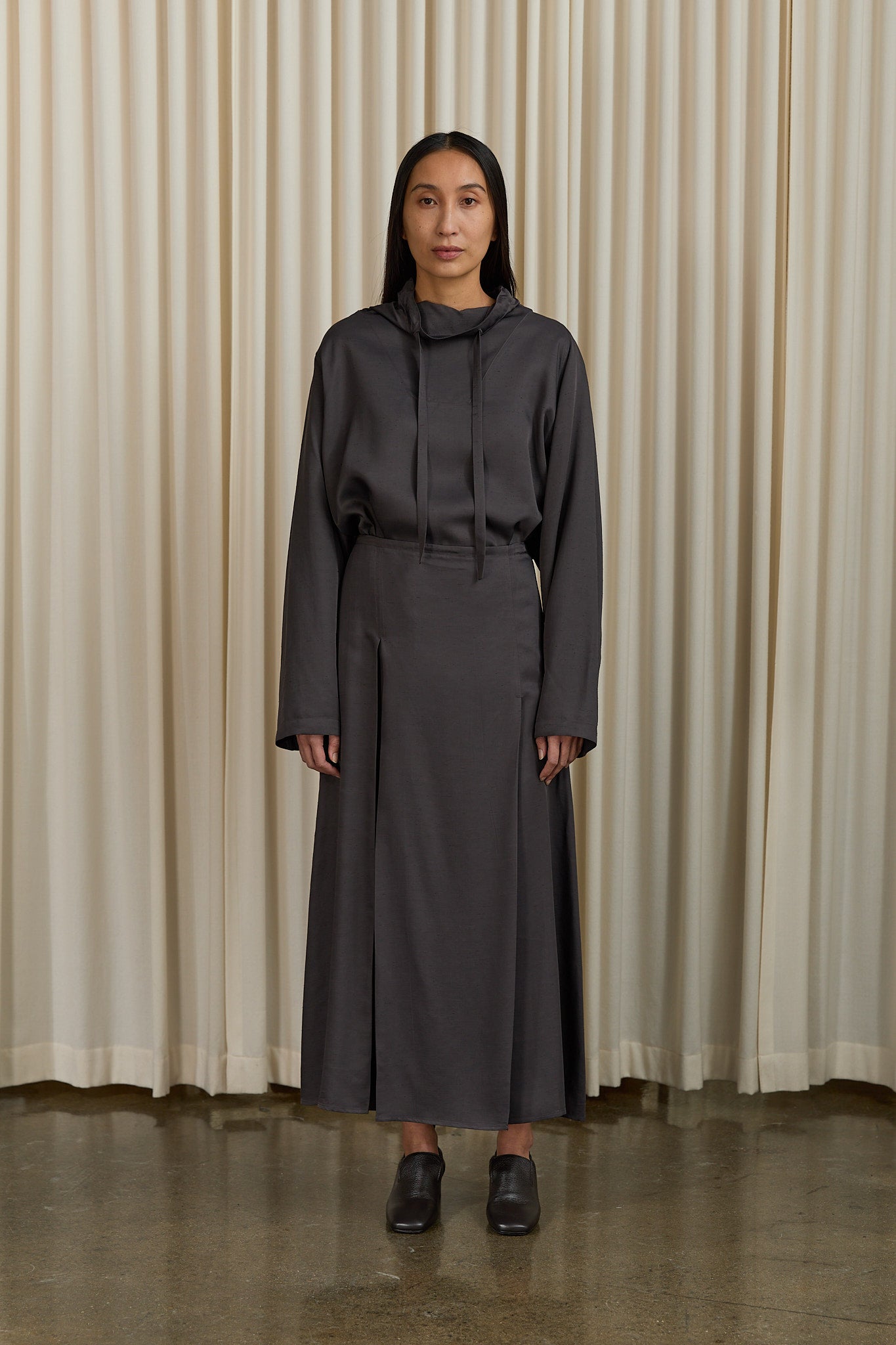 Worn with Studio Nicholson Mirelle Pop Over Top in Grey and Studio Nicholson Moon Car Shoe in Brown.