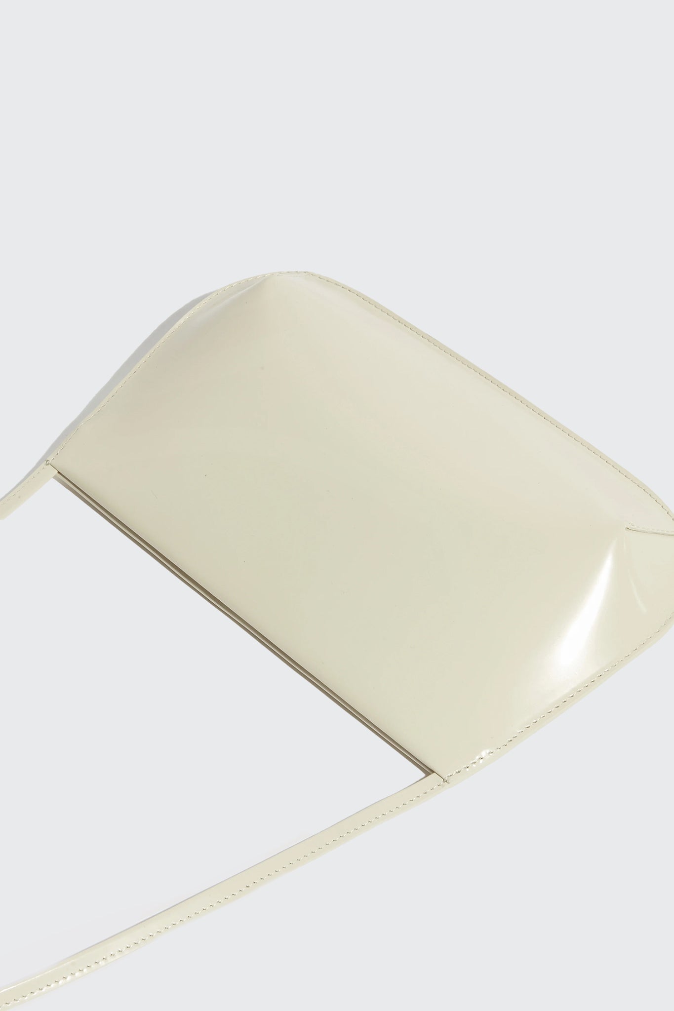 Slim shoulder bag in spazzolato leather with a slim, ribbon-like strap featuring magnetic closure and inner pocket.